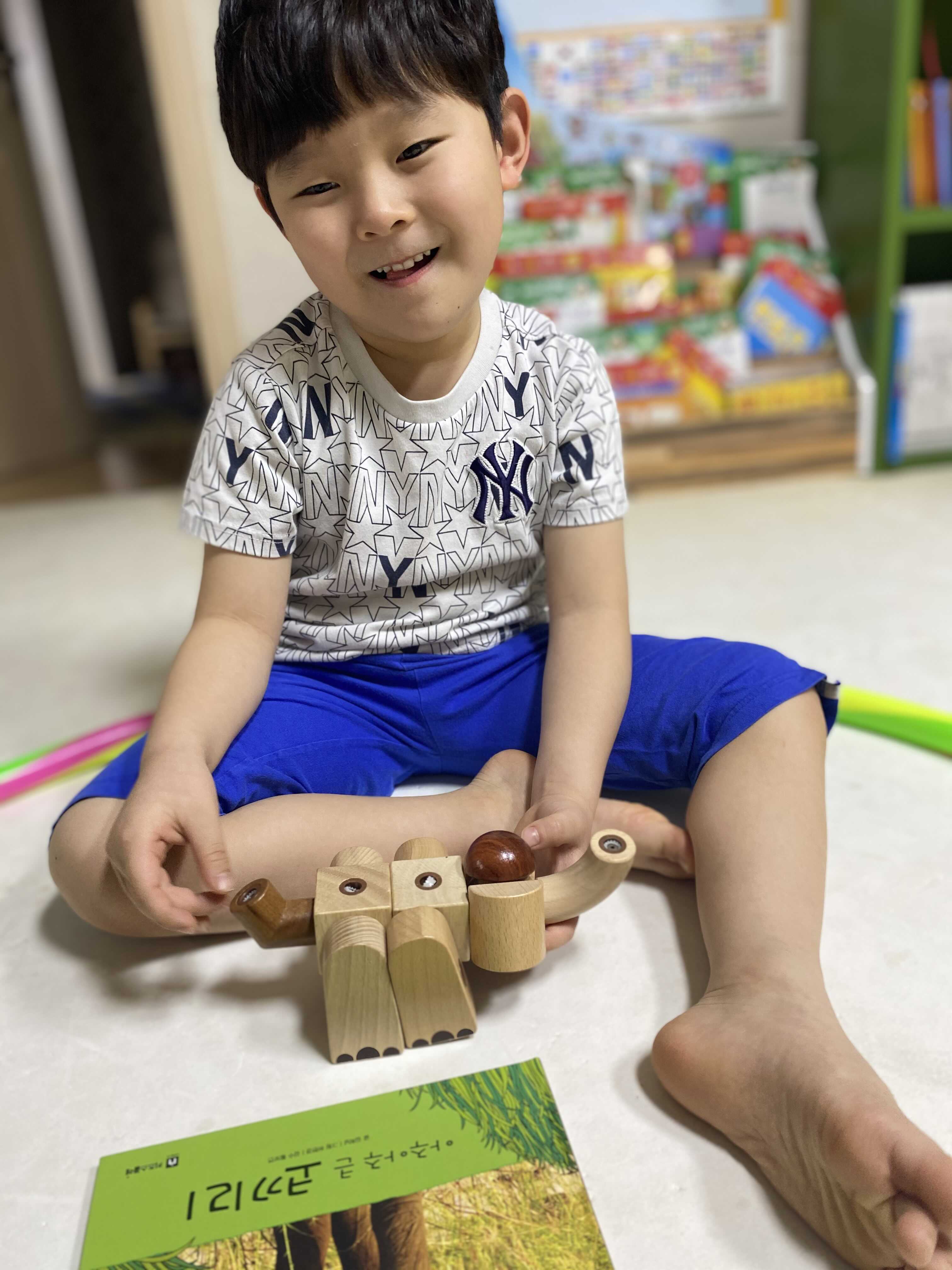 책을 보며 이것저것 질문하고 스스로 답을 찾더니 아주 뿌듯한 미소를 짓고 다시 블록을 만든다.
